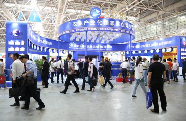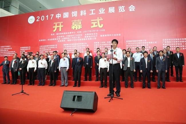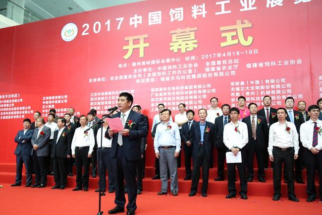 天馬科技訊  418-19日,由中國飼料工業協會、全國畜牧總站主辦,福建天馬科技集團股份有限公司(以下簡稱“天馬科技”)特別贊助的行業盛會——2017中國飼料工業展覽會暨畜牧業科技成果推介會在福建省福州海峽國際會展中心隆重舉行。農業部副部長于康震,農業部原副部長、中國飼料工業協會顧問高鴻賓,中國飼料工業協會會長、中國工程院院士李德發等領導,以及包括天馬科技、海大集團、大北農、新希望六合等上市公司在內的近400家國內外公司參展和數萬名客商代表、行業人士參加展會。中國飼料工業協會副會長單位、本屆唯一的特別贊助單位天馬科技,以安全、高效、環保的特種水產飼料及技術解決方案亮相此次展會,吸引了來自全國各地的客戶,上下游合作伙伴及同行的目光。中國飼料工業協會副會長、天馬科技陳慶堂董事長應邀出席展會,并在418日舉行的展會開幕式上代表全國飼料企業致辭。
