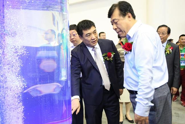上圖為陳慶堂董事長向于康震副部長介紹天馬科技產品及相關水產品