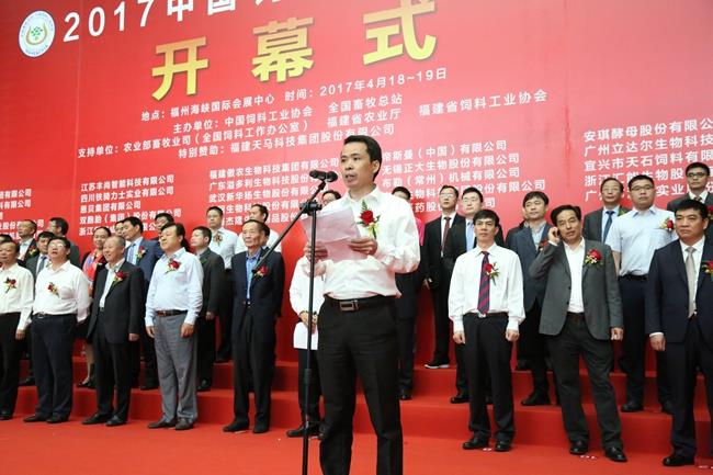 天馬科技陳慶堂董事長代表全國飼料企業在中國飼料工業展上致辭