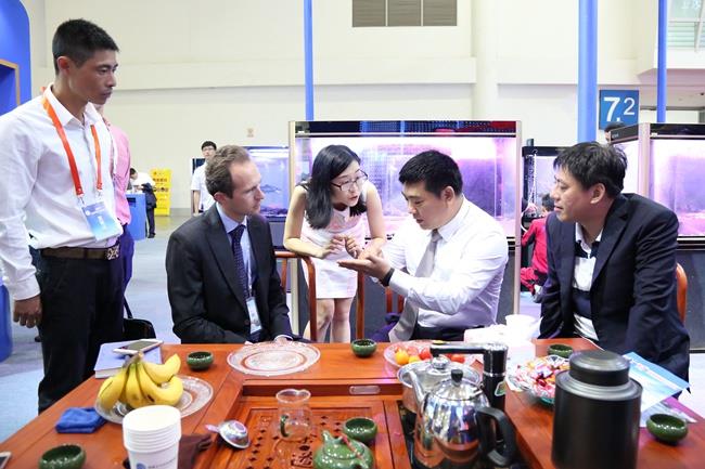 本次展會,天馬科技展館一開館,展臺前就熱鬧非凡,人頭攢動。天馬科技展館設計獨到,簡潔明快的建筑線條,海洋藍配上高效節能、環保、安全、舒適的綠色照明體系,充滿活力的鰻魚、石斑魚、大黃魚、甲魚、龜、虹鱒等各類特種水產品形象展示無不彰顯了集團高端、大氣的企業形象,讓天馬科技展館賺足了眼球,成為全場最“吸睛”的展位。各大媒體記者,各大參展商、供應商、客戶,以及觀眾紛紛在天馬科技展館駐足流連,并不時向現場的天馬科技工作人員咨詢產品相關情況。